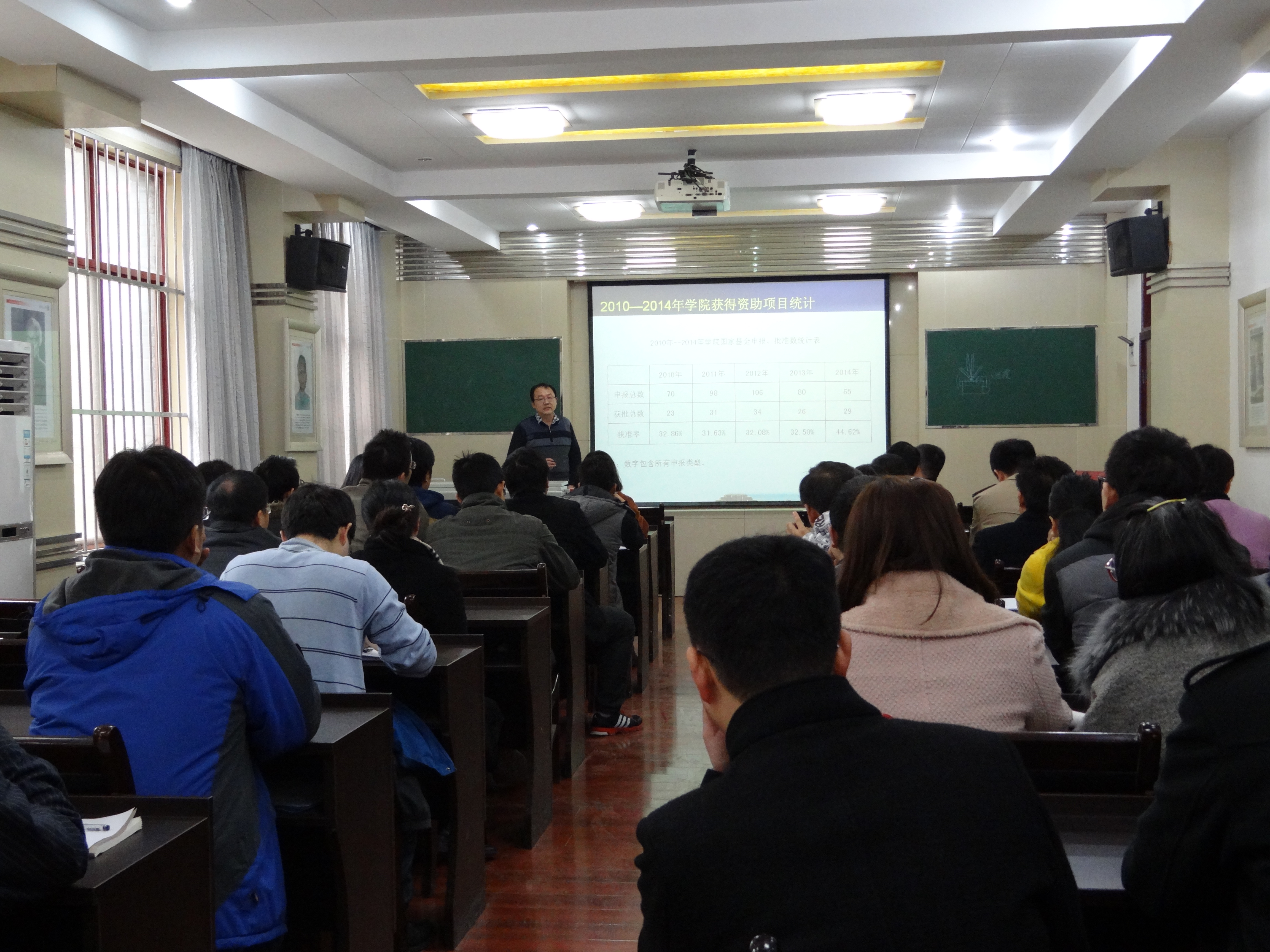 会上,徐光华副院长总结了我院2014年的申报、获批情况以及近几年我院申报、获批的总体趋势,针对基金项目申报分析了我院目前的状况,同与会教师、同学谈了2015年的申请工作总体思路和具体措施。