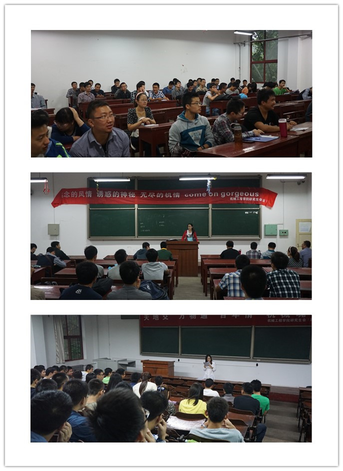 9月13日,在辅导员老师和学院研究生会的组织下,机械学院在西二338、342教室开展了2014年新老生交流会,2014级全体研究生和研二学长代表共计280人参加了本次活动。