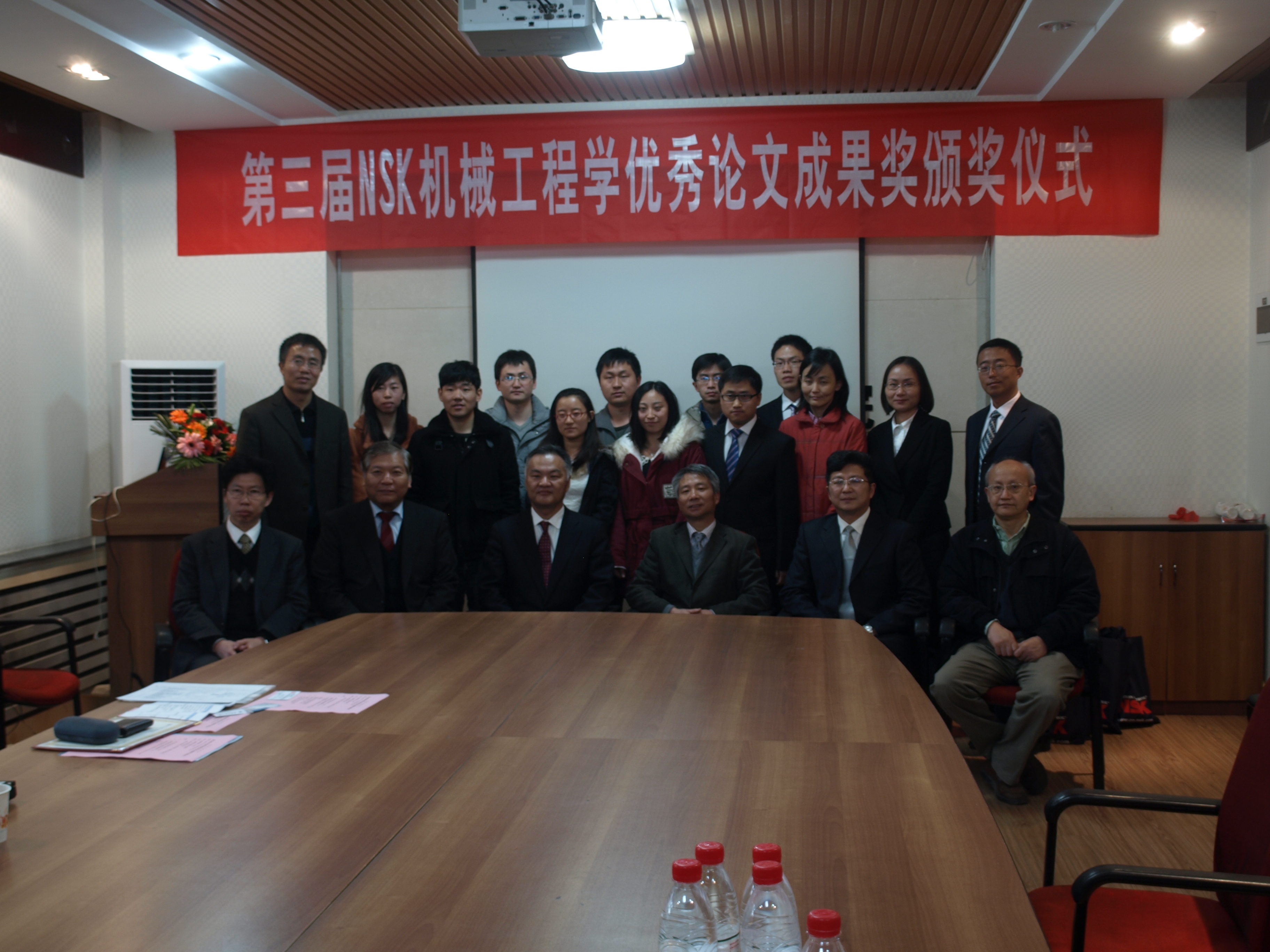 “NSK机械工程学优秀论文成果奖”,是由恩斯克投资有限公司设立的奖学金,旨在鼓励在机械工程专业领域内做出独特贡献和刻苦钻研的优秀研究生,今年是第三届,受奖学生10人,每人奖励5000元人民币。获奖名单是:吕杭原、张思文、吴文武、杨志勃、谷飞飞、罗钰、张琪、刘可佳、牛东辉、张伟为。