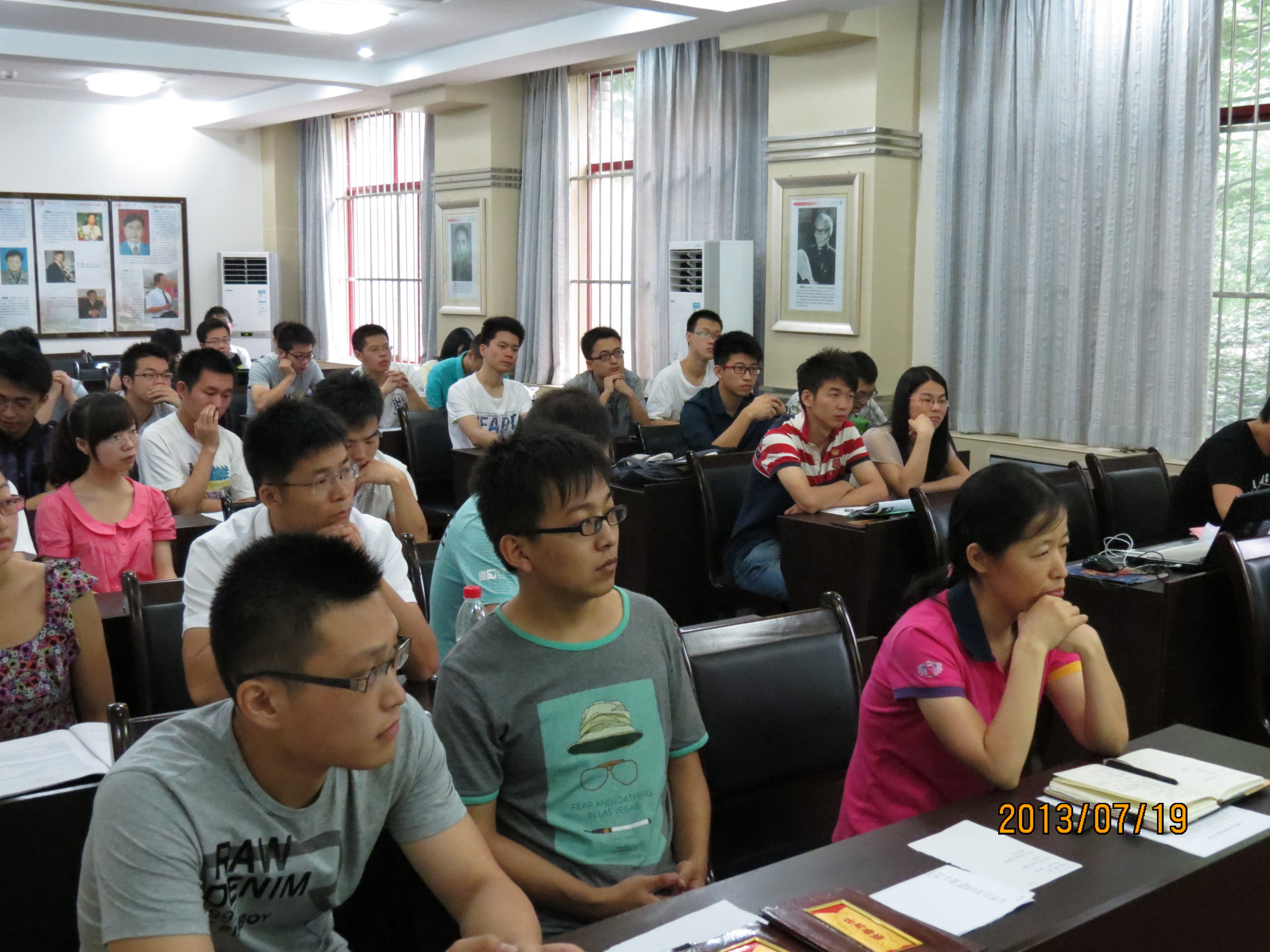 2013年7月19日下午,机械学院党委副书记杨鹏老师、党委秘书杨彬老师、学院办公室王昌老师、研究生教务办公室孙利平老师、研工办雷励老师等学院各职能部门老师和硕博各班学生干部相聚在机械学院第三会议室,举行2012-13学年第二学期研究生会工作总结会议和暑期安全工作会议。