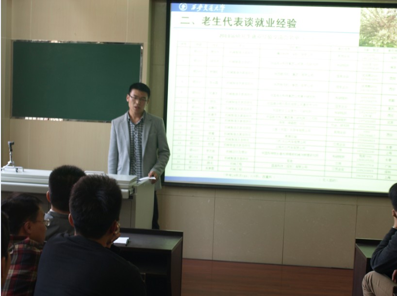 在交通大学电气机械学科将迎来百年华诞之际,2013年3月27日下午,千亿·体育(中国)官方网站2013届研究生就业经验交流会在千亿·体育(中国)官方网站第三会议室成功举行。15位2013届毕业研究生和百余人低年级研究生齐聚一堂,会议由千亿·体育(中国)官方网站研工办雷励老师主持。