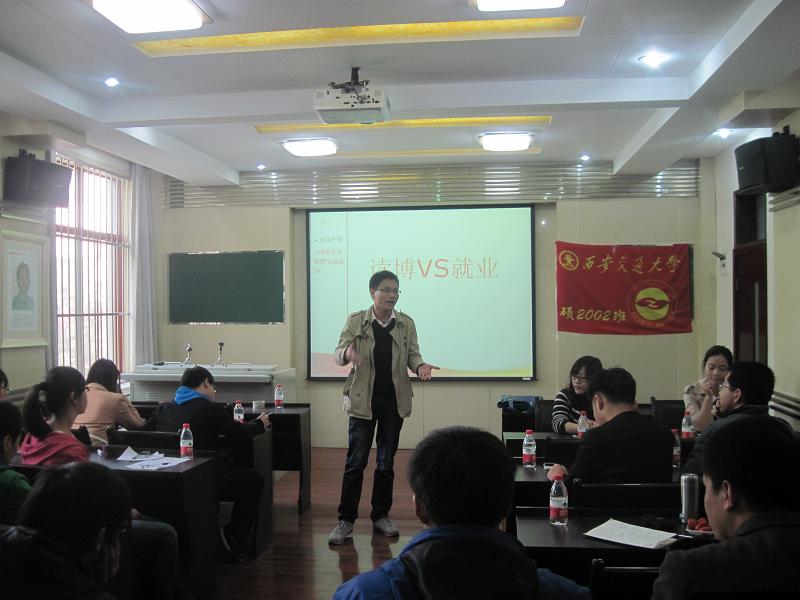 为迎接西安交通大学第十四届“十佳党支部及特色活动示范支部” 评选,机械学院硕2002班党支部于4月10号下午在机械学院楼第三会议室成功地举行了组织生活观摩会。此次生活会以自由辩论的形式展开,辩论的主题是:是否支持读博。会议由王金宇同志主持,彭康书院的刘丽、南亚娟老师莅临观摩指导。