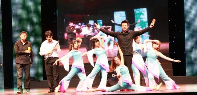 演出当晚,跟随着一段西安交通大学的介绍视频,我校师生共同演出的情景音乐剧《故乡的云》在热烈的掌声中登上上海交通大学“菁菁堂”的舞台。该剧故事取材于我校师生筹备本次赴上海交通大学演出内容的商定过程,通过再现对演出内容的讨论,巧妙的穿插了我校各位学生演员丰富多彩的才艺展示,架子鼓、朗诵、古交响典乐、爵士舞、民族舞等不同内容,收获台下观众的阵阵喝彩。最后故事结束于一段改编自同名歌曲《故乡的云》的舞台剧,综合声乐、器乐、舞蹈、朗诵多种元素,传达了两所学校同根同源,百年一家的深远意义,整个节目博得了观众的热烈掌声。当得知该节目的构思创意以及舞台设计均由我校文治书院团工委组织,由机械学院及电信学院本科生完成时,上交机动学院的领导给予了高度评价。