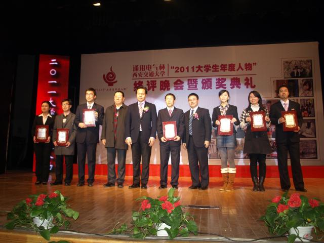 “通用电气杯”西安交通大学2011大学生年度人物终评晚会暨颁奖典礼12月21日晚在宪梓堂举行,包括我院李博同学在内的10个团队或个人成为首届西安交通大学大学生年度人物,5名同学获提名奖,7名同学获入围奖,2名同学分获“无私奉献”奖、“自强不息”奖。