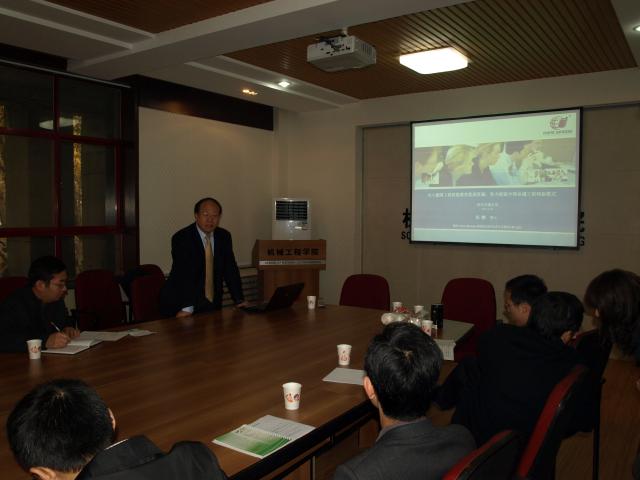 讲座中主要介绍了德国工程职业教育发展的“双元制”模式,以工程过程为导向的教学“七步法”等。通过对中德工程教育课程设计思路的比较,提出创新人才培训模式以及CDIO工程教育实施方法。针对目前中国在工程教育培训的三大瓶颈及解决思路,介绍了中德教师培训项目,中德机械工程院校国际合作案例,提出中国卓越工程师计划实施建议,并商讨在我校建立德国数控仿真实验室的可能性。