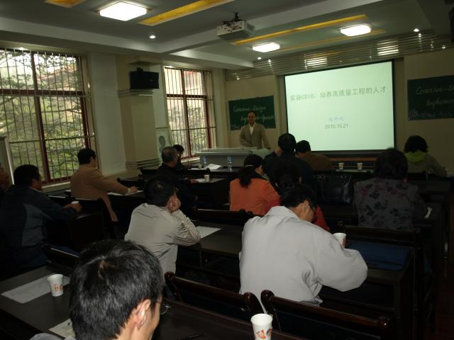 2010年10月21日下午,在机械学院第三会议室召开了CDIO培养模式研讨会,学校副教务长邱捷教授,学院党政领导,各系所教学负责人,学院全体教授等30余人参加会议。会议由常务副院长高建民教授主持。