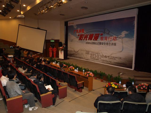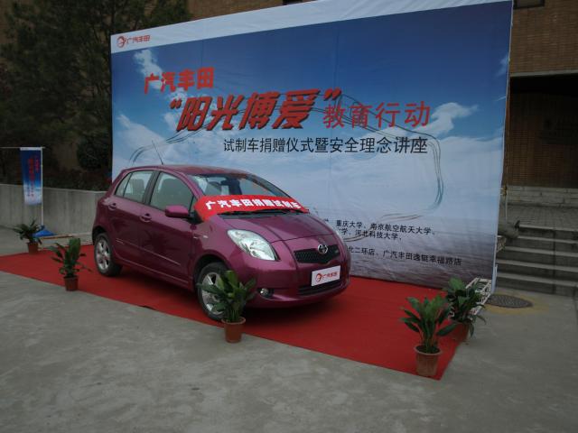 2010年11月18日,广汽本田向西安交通大学、重庆大学、南京航空航天大学、燕山大学、长安大学等十所高校捐赠试制车,捐赠仪式在科学馆举办,本广汽本田综合管理部张华部长、研究开发中心谭为科长、机械学院常务副院长高建民教授、以及南京航空航天大学、燕山大学、长安大学等十所高校学院院长以及研究生代表100余人参加了捐赠仪式。