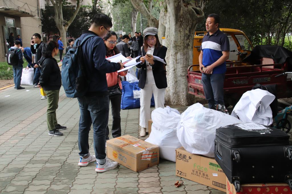 学院为同学们准备了货车及客车,全体搬迁同学遵守时间表,将打包好的行李有序地拿到楼下并放到货车上。上午10:15,全体搬迁同学前往思源学生活动中心参加搬迁仪式,研工部李秀兵部长、学院张敏副书记、后勤保障部各位老师、及学院各位辅导员和系所秘书出席仪式,并由张敏副书记主持。