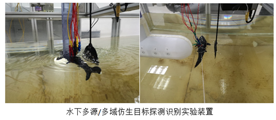 (5)驱感控一体隐身侦测技术—针对传统电机驱动刚性水翼运动模态少,噪声明显等技术瓶颈,搭建了多种基于柔性驱动器的仿生水下航行平台,提升了仿生水下航行器驱动效果及驱动尺寸,降低噪声提升隐蔽性,为隐蔽侦测任务提供了新型解决方案。