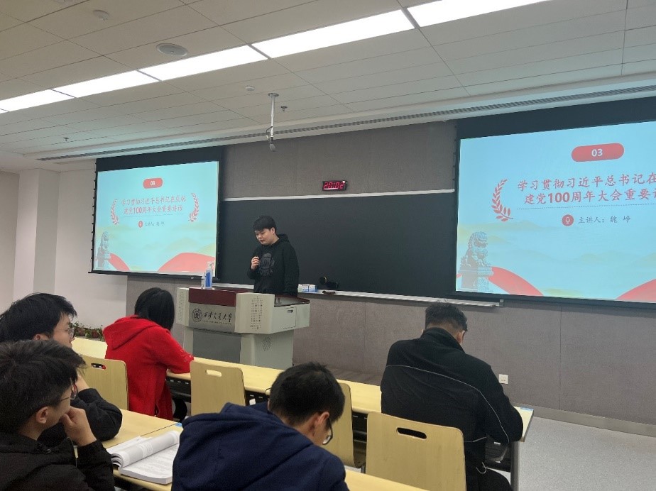 最后,硕0003党支部书记李希晨同志给大家分享了一代伟人邓小平的事迹,总书记在邓小平同志诞辰110周年座谈会上指出:“邓小平同志是全党全军全国各族人民公认的享有崇高威望的卓越领导人,伟大的马克思主义者,伟大的无产阶级革命家、政治家、军事家、外交家,久经考验的共产主义战士,中国社会主义改革开放和现代化建设的总设计师,中国特色社会主义道路的开创者,邓小平理论的主要创立者。”表达了对邓小平同志的肯定,李希晨同志随后带领大家思考问题,对邓小平同志的理解更上一层楼,我们学习邓小平同志的事迹,也是在学习他对共产主义远大理想和中国特色社会主义信念无比坚定的崇高品格。