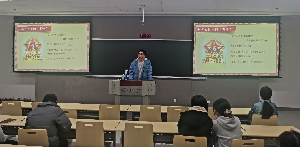 随后,丁毅同志分享了自己在湖南省长沙市望城区雷锋纪念馆的参观之旅,讲述了自己参观雷锋塑像、雷锋展馆与党史馆的过程,在此过程中不但学习到了雷锋同志的“钉子精神”,也不断反思着自身党性修养的不足。然后丁毅同志分享自己心中的雷锋精神,指出自己要在学习上学习雷锋精神、在生活中发扬雷锋精神、在社会中践行雷锋精神。最后是雷锋精神知识竞答环节,支部同志们热情高涨,纷纷踊跃回答问题。