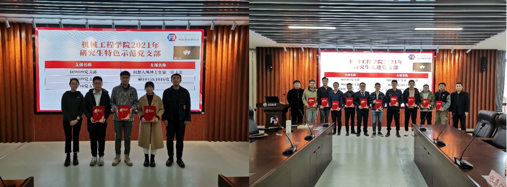 最后,根据汇总各支部成绩,确定了“硕9009党支部”、“机器人所博士生第一支部”、“机器人所博士生第三支部”、“硕1015&1016党支部”和“硕9010党支部”5个党支部获得“千亿·体育(中国)官方网站2021年研究生特色示范党支部”称号,并由李瑞萍老师和苏宇老师为支部进行了颁奖。确定了“硕0004党支部”、“设计所博士生第二党支部”、“硕0003党支部”、“硕1013&1014党支部”等10个支部为“千亿·体育(中国)官方网站2021年研究生先进党支部”,并由杨江坤老师和张喜红老师进行了颁奖。