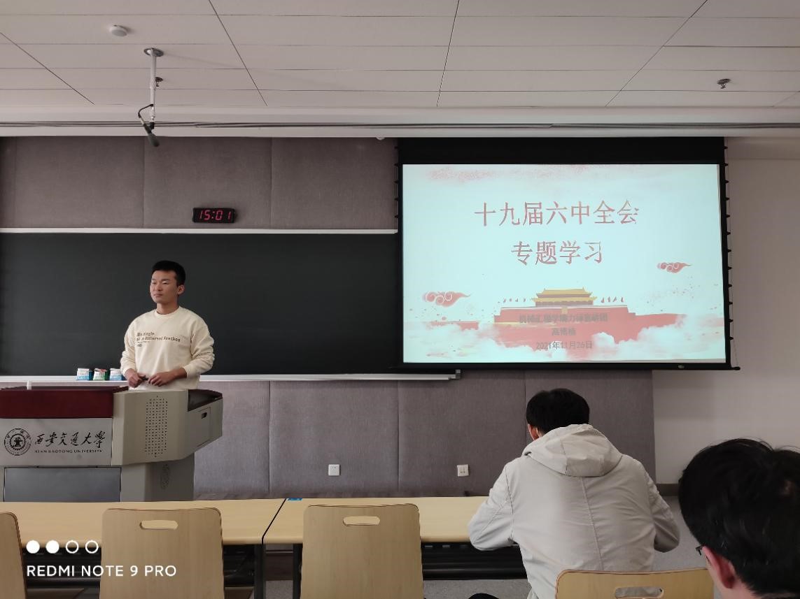 2021年11月26日下午3点,S0010党支部邀请“力行”宣讲团在2-6003进行十九届六中全会主题宣讲,此次宣讲要求S0010全体党员及团员参与,共同学习党的十九届六中全会精神。
