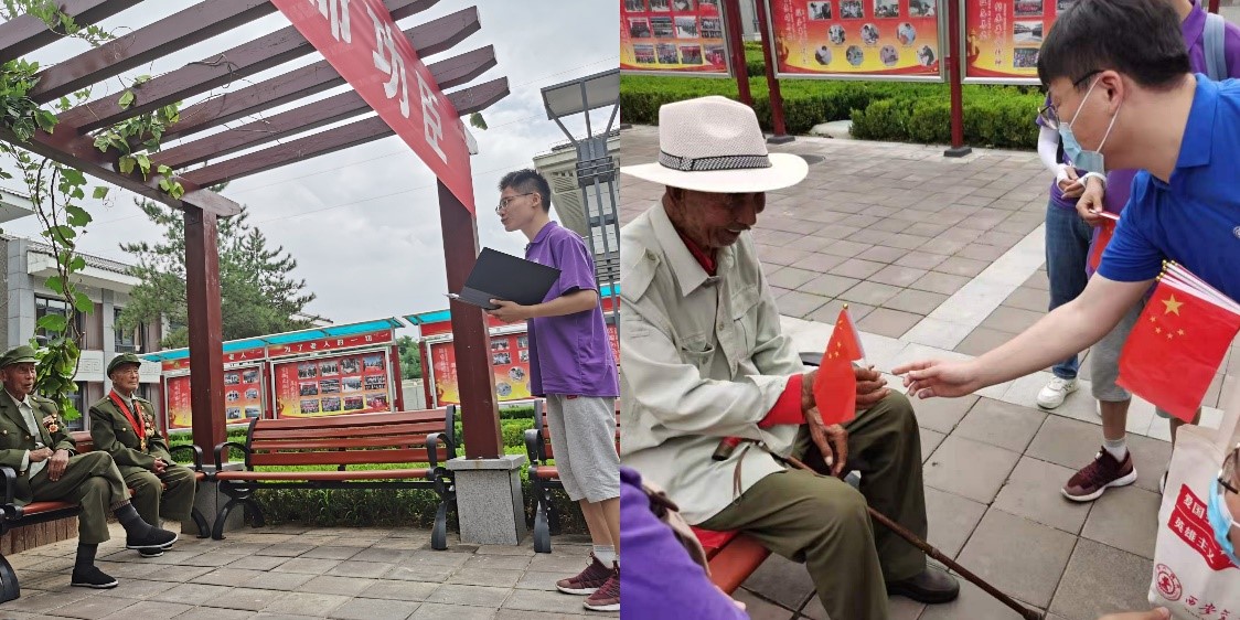“星火燎原”实践队的成员为感恩老兵爷爷们的故事分享,为老人们带去欢乐,共同演唱了《过雪山草地》等红色歌曲,爷爷们深感温暖,并且热情合唱。南开大学恩来精神展演团的成员们为爷爷们动情展演了周恩来总理的故事和恩来精神,得到了爷爷们的肯定。表演结束后,实践队向老兵爷爷们赠送了小型五星红旗表示感谢。虽然出于防疫的考虑队员们无法与他们近距离交流,但是心灵的距离并未因此有所隔阂,交流现场欢声笑语不断。