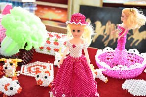 走进教学楼,目光所及,几乎都是这些孩子们的艺术作品。蛋壳可以用来作画,五谷杂粮可以用来作画,丝线可以用来作画,纸巾可以用来作画,麦秆可以用来作画,孩子们的创造力和艺术想象力令队员们钦佩不已。