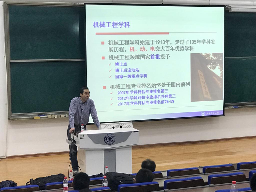 随后,千亿·体育(中国)官方网站教学副院长段玉岗教授为新生作入学教育报告。他首先对新生的到来表示衷心的祝贺和热烈的欢迎。接着,他带领同学们了解了千亿·体育(中国)官方网站的发展历程和专业概况,详细介绍了本科生的培养体系和教学管理规章制度,并特别对培养过程中学生关注的几个问题进行了详细解答。同时,他告诉新生们,大学是没有上锁的保险箱,提醒大家要做好充分的思想准备,寻求和建立人生目标,树立为自己学习的思想,养成自主学习的习惯。最后,他对新生提出了自己的建议和希冀,要多参与,多找兴趣点;多实干,锻炼学习力;多交流,不断完善自己;多“异想天开”,实现个人与社会价值。他希望同学们通过自身努力及大学培养,成为卓越工程师及领军人才,促进中国从制造大国向制造强国的转变。