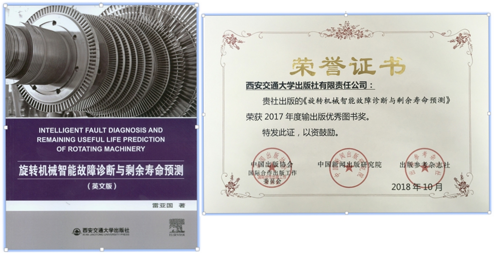 近日,由中国出版协会国际合作出版工作委员会、中国新闻出版研究所、出版参考杂志社联合主办的“第十七届输出版引进版优秀图书”评选结果揭晓,由西安交大机械学院雷亚国教授撰写、交大出版社出版并输出版权到励德爱思唯尔出版集团的《旋转机械智能故障诊断与剩余寿命预测》一书荣获第十七届(2017年度)输出版优秀图书奖。